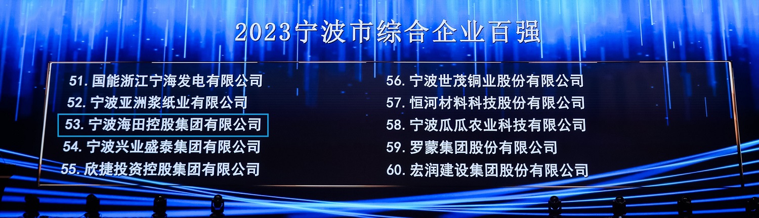 在這份含金量十足的榜單中,寧波海田控股集團以2022年營業(yè)收入1069435萬元的成績獲得寧波市綜合百強企業(yè)第53位和寧波市服務(wù)業(yè)百強企業(yè)第15位。